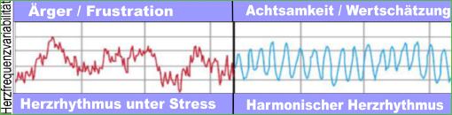 Die Analyse der Herzratenvariabilität zeigt mir den momentanen Zustand meines autonomen (vegetativen) Nervensystems an. Dieser unwillkürliche Teil des Nervensystems steuert Leistungsfähigkeit und Regeneration und kann sich entweder im "Regenerationsmodus" im "Leistungsmodus" oder im "Starre- oder Erschöpfungmodus" befinden. Das HRV Biofeedback trainiert einen Zustand der inneren entspannten Motivation und schafft einen Zustand der Regeneration von Körper und Psyche.